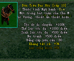 64 đội tham gia . 22h báo danh 22h10 đánhMỗi trận 6 phút , 3 phút chuẩn bị . Thua : 18tr exp + 2 lệnh bài boss xanh Thắng : Thắng : 8tr exp , thua 18tr exp Vô địch : 1 Mật Tịch Bí Quyết , 300x , 1 danh hiệu độc cô cầu bại 6 ngày , 1 cặp VLMT TTK , random 50% 2 loại bánh 1 Ngựa Bôn Tiêu Vô Địch : KTC 5% , Lực Công Kích 5% 2 dòng vàng , còn lại trắng . Hạn sử dụng 6 ngày
