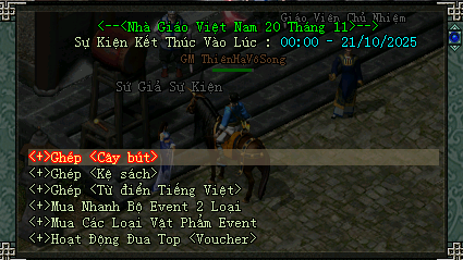 Hoặc có thể tìm nguyên kiệu để ép theo công thức tại NPC Sự Kiện: