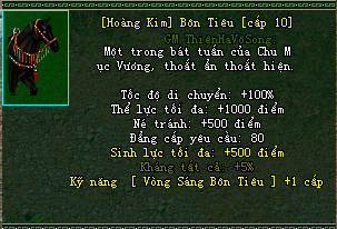 ⚜️Ngựa Bôn Tiêu Hoàng Kim không bảo hộ ( 500 máu 5 KTC% lên xuống ngựa không mất thuộc tính )