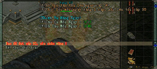 Nhiệm vụ : mỗi ngày hoàn thành : 40 dã tẩu , 10 cần câu |